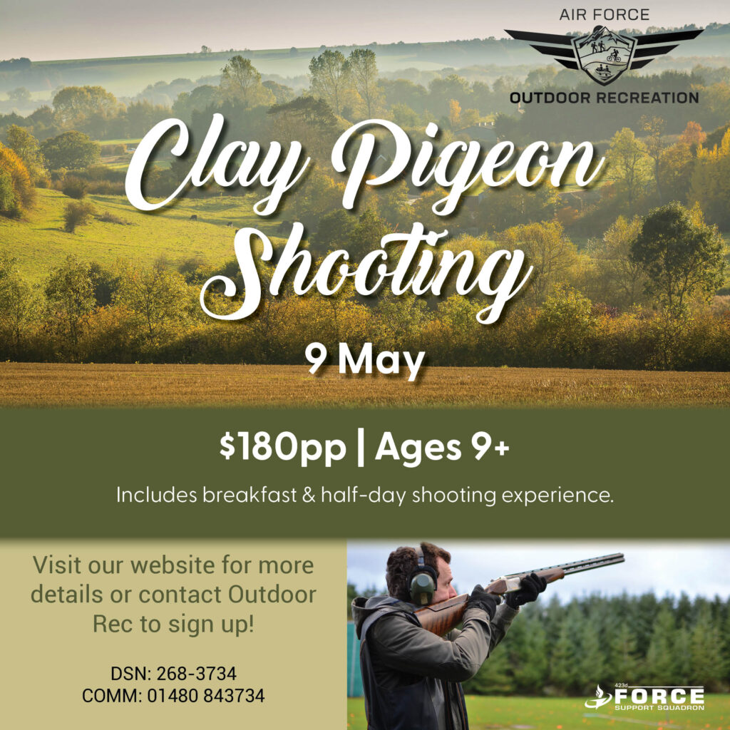 Contact Outdoor Recreation to sign up! DSN: 268-3734 | COMM: 01480 843734