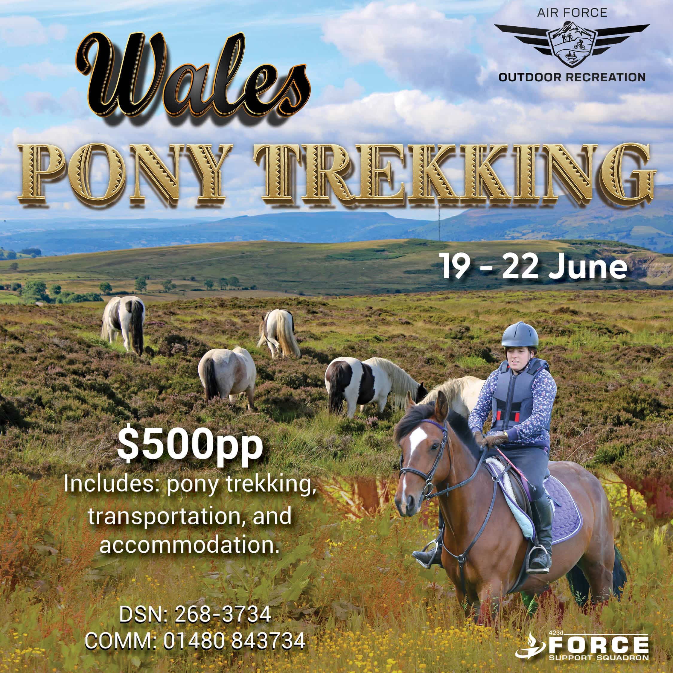 Day 2: Full-Day Pony Trek. Ride across the Black Mountains (92kg/14.5 stone limit). Packed lunch/waterproofs essential.